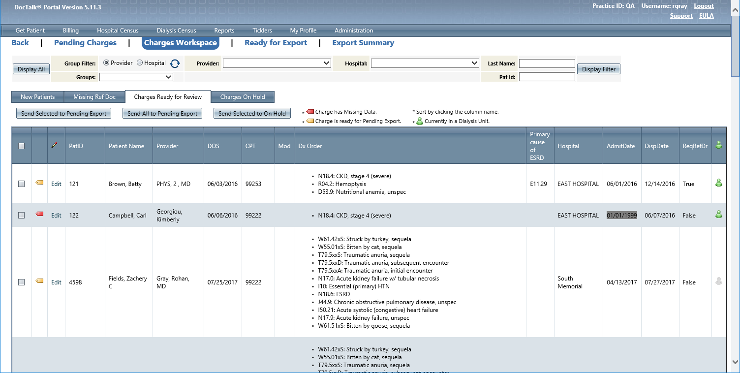 Dialysis Billing Workspace |