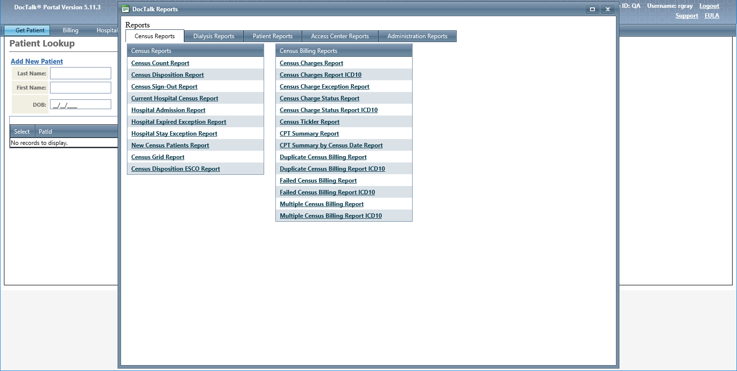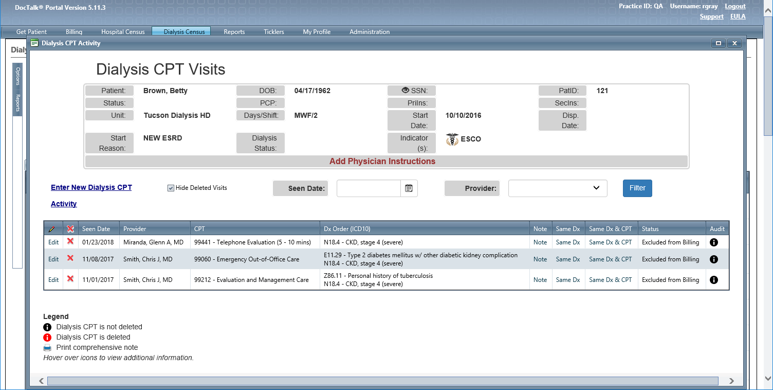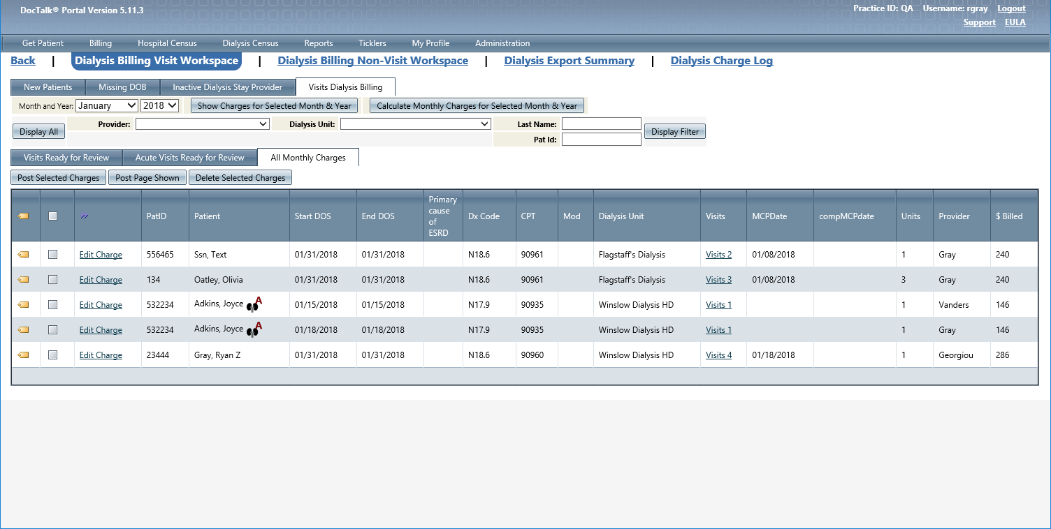 Dialysis Billing Workspace |