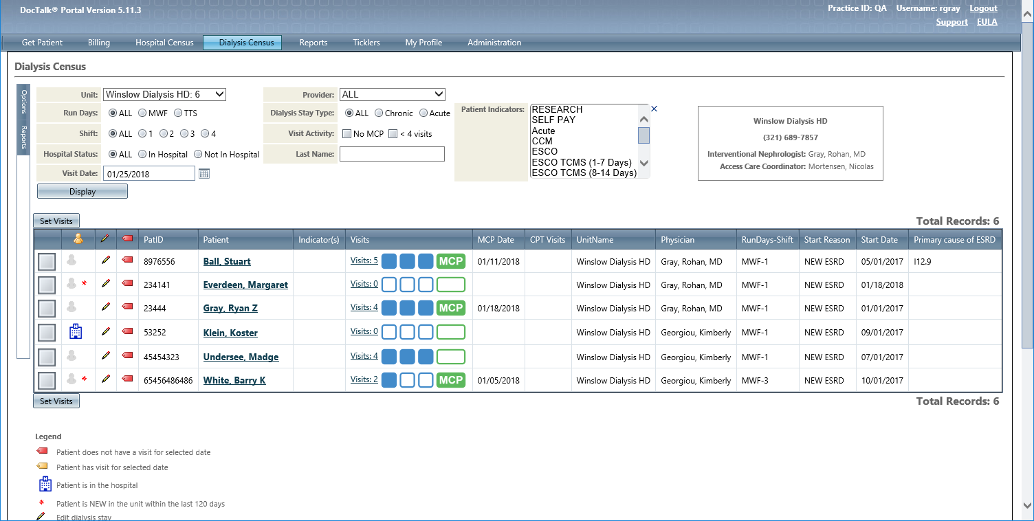 sign-out, and dialysis visit tracking via a mobile device and/or Web Portal.