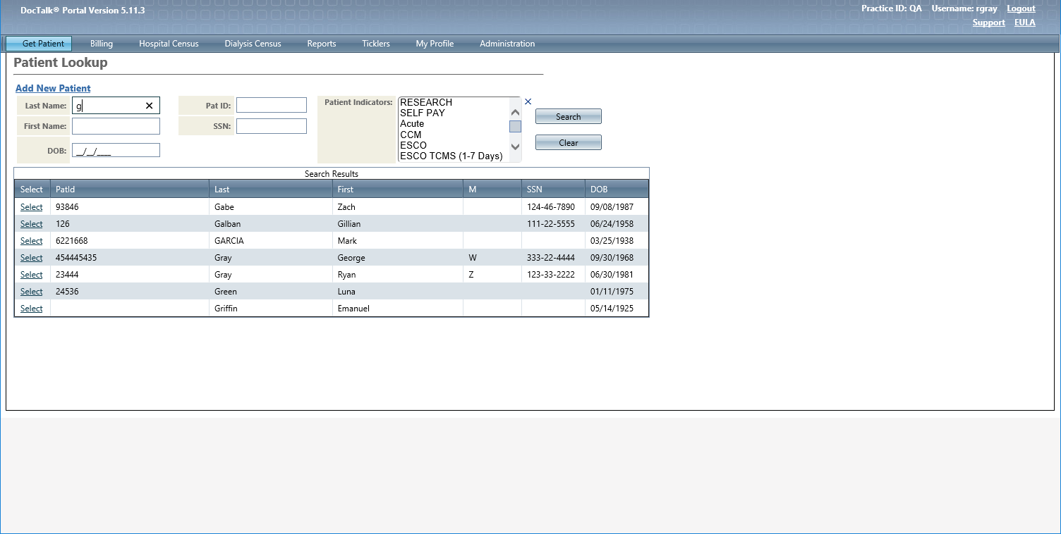 Patient Search |